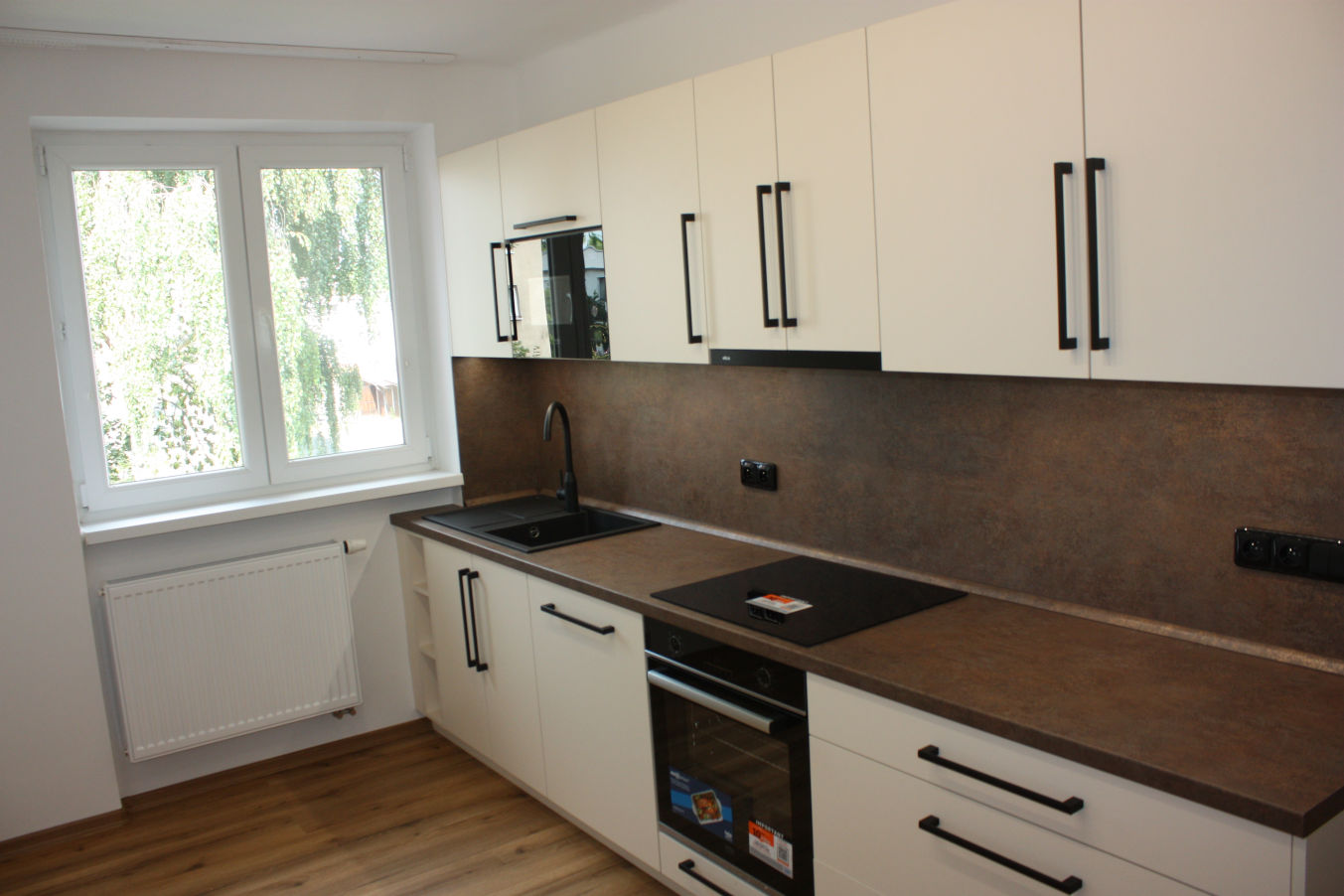 Kuchyňská linka + varná deska, trouba, mikrovlnná trouba.